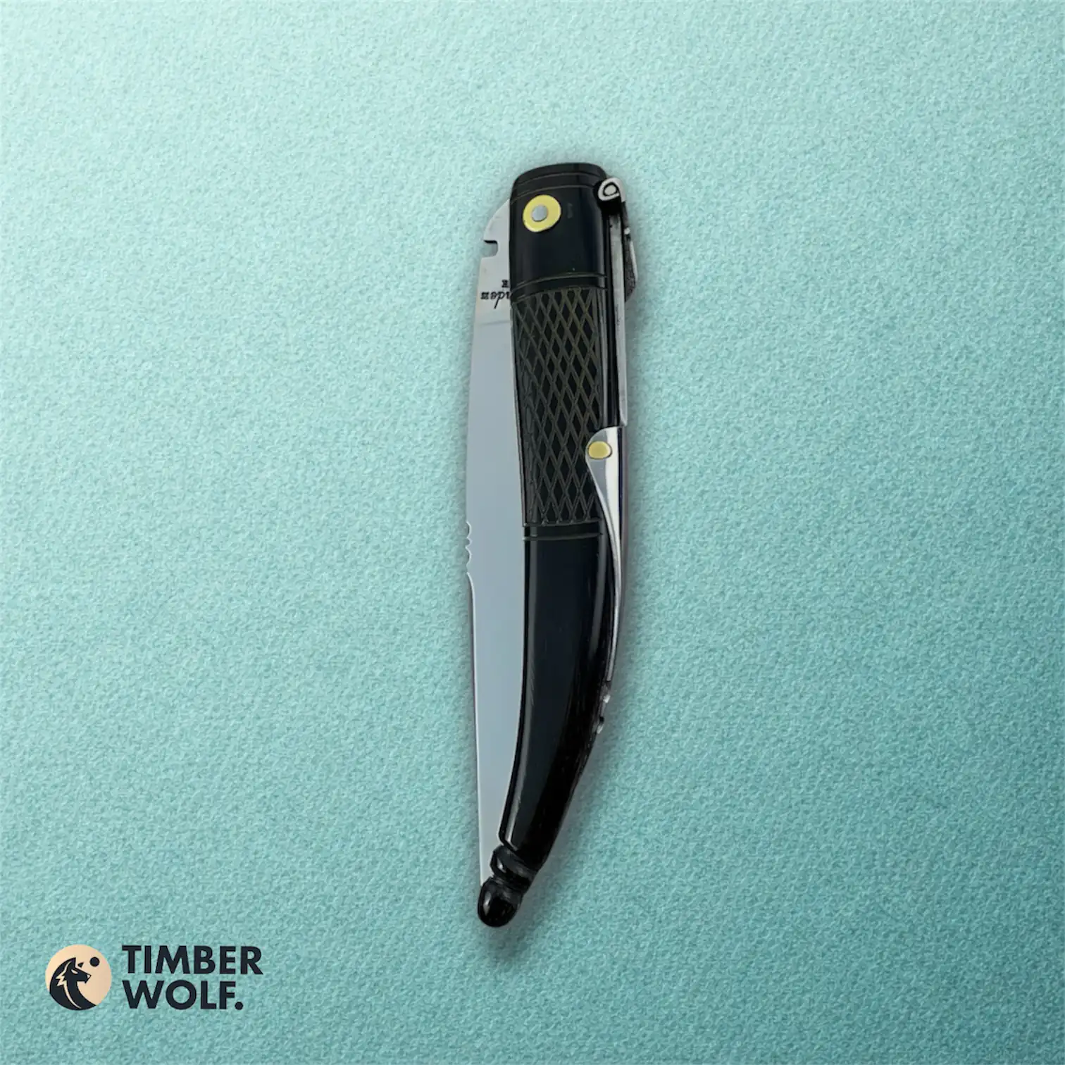 Navaja Romana elaborada con empuñadura en Cuerno de Búfalo y hoja en Acero 440-C. Presenta virolas de alpaca y sistema de cierre mediante palanquilla.